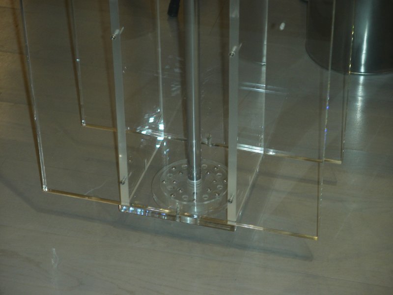 Nous privilégions une découpe traditionnelle qui n' altère pas la qualité et la durée de vie du Plexiglas ,ainsi qu' un polissage manuel qui confère au plexiglas un rendu poli brillant parfait des chants. (aussi transparent que la face sans aspérités ni striures ,à l oeil et au toucher ) contrairement au laser ,technique usité ,dans le marché des présentoirs et meubles bas de gamme , qui privilégie le gain de temps et de production (une seule étape au lieu de 5 ) aux détriments de la qualité,de la finition et de la durée de vie du produit car seul la rentabilité prime .
